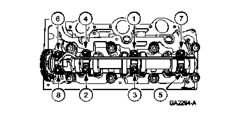 NOTE: After installing the bolts check the camshaft for free rotation.