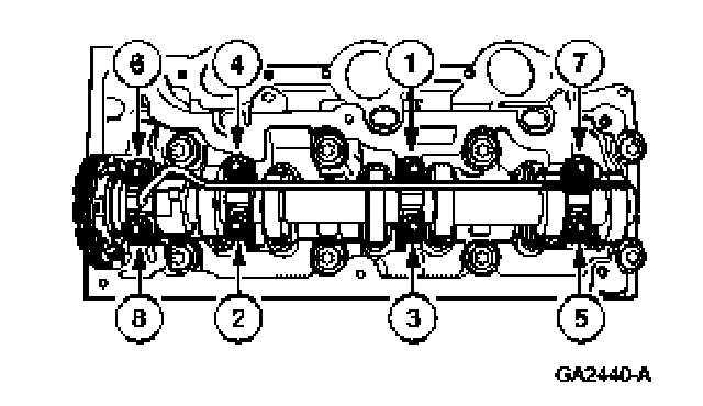 3. NOTE: The camshaft bearing caps must be installed in their original positions.