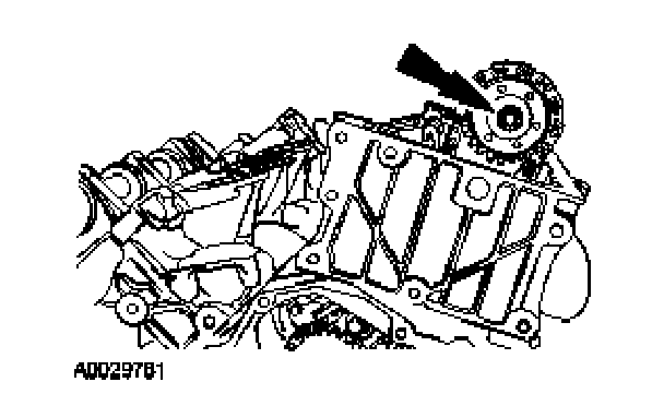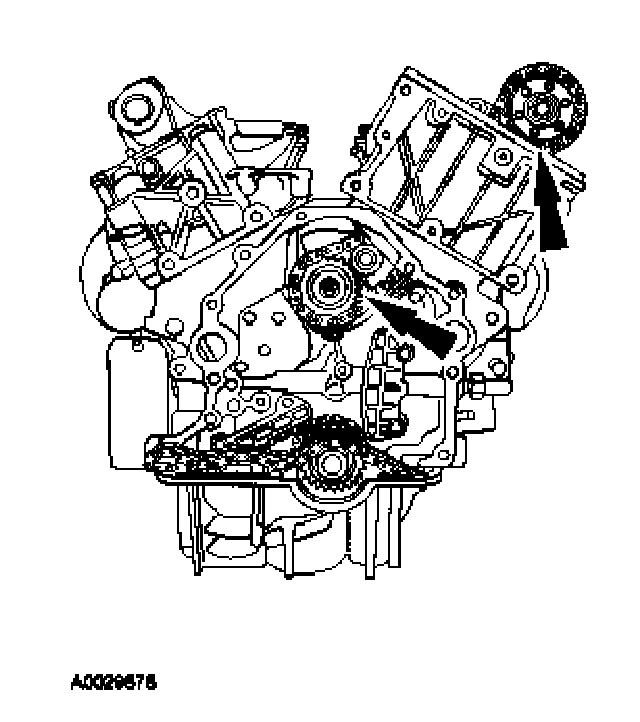 6. NOTE: The camshaft chain sprockets must be oriented correctly. Install the lower chain sprocket and the camshaft sprocket.