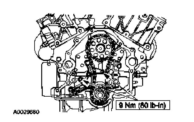 7. Install~ but do not tighten the camshaft sprocket bolt.