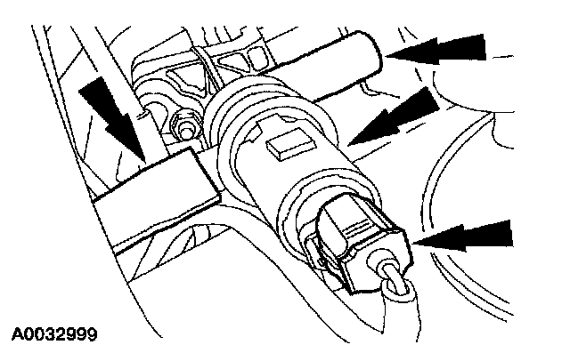 2. Disconnect the electrical connector and vacuum hoses and remove the Evaporative Emission (EVAP) canister vent solenoid.