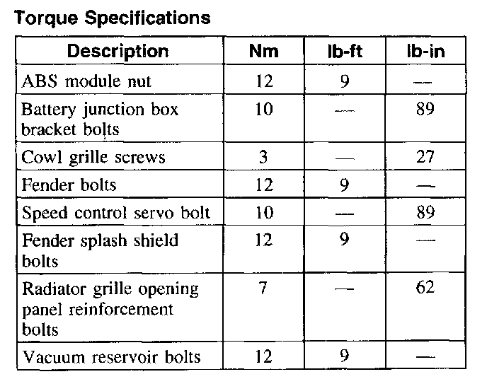 Torque Specifications: