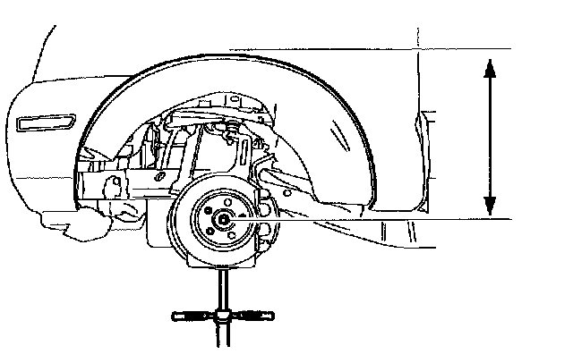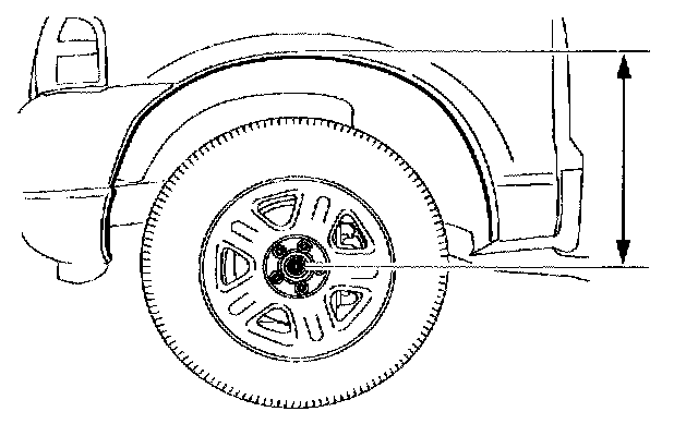 1. For reference during the installation procedure, measure the distance from the lip of the fender to the center of the wheel hub with the vehicle in a level static ground position.