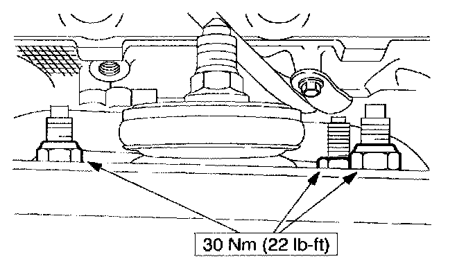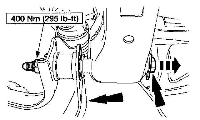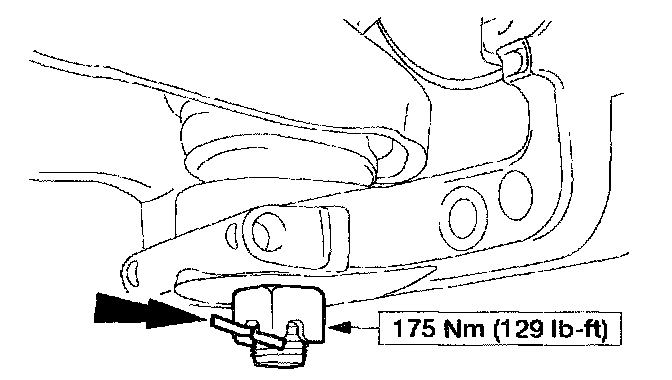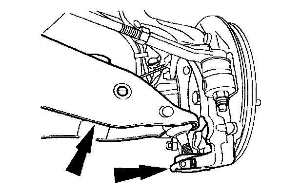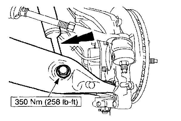 11. NOTE: Using a suitable jack stand, raise the suspension until the distance between the lip of the fender and the center of the wheel hub is equal to the measurement taken in the removal procedure before tightening the inboard lower arm mountings. Make sure that the forward mounting is tightened first.