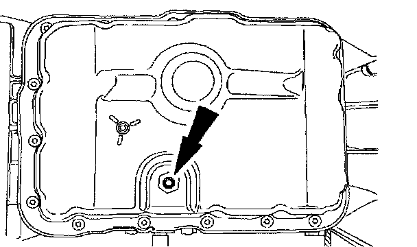 9. With the transmission range selector lever in the PARK position, hold the larger drain plug with a wrench and remove the small (center) fluid level indicating plug using a 3/16 inch Allen key.
