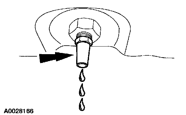 10. Allow the fluid to drain. Wait approximately one minute. When the fluid comes out as a thin stream or a drip, the fluid is at the correct level.