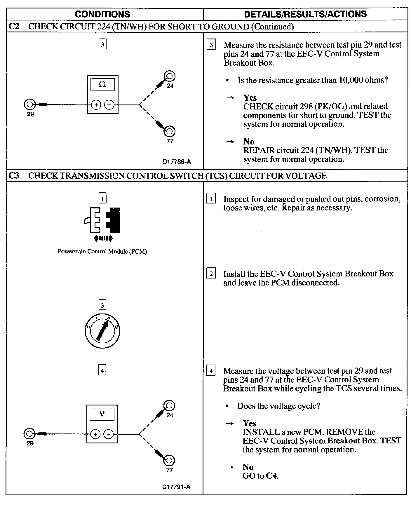 PINPOINT TEST C: TRANSMISSION CONTROL SWITCH (TCS) IS NOT OPERATING PROPERLY