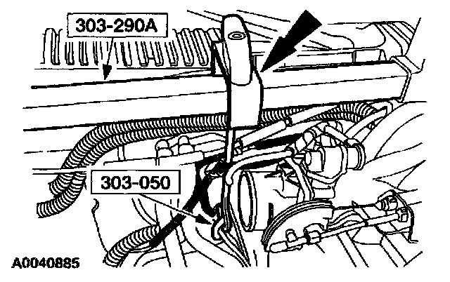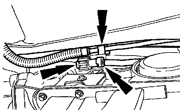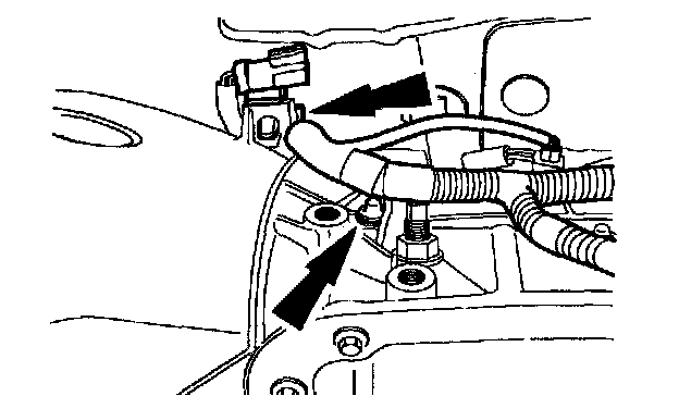 36. Connect the LH heated oxygen sensor electrical connector retainer and the harness clip to the transmission.