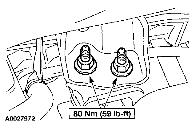 47. Install the crossmember and transmission support insulator nuts.