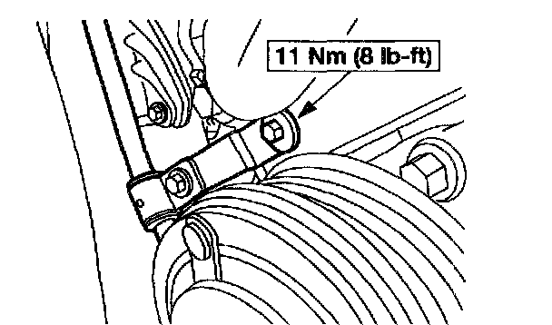16. Install the power steering pressure hose support bracket and the bolt.