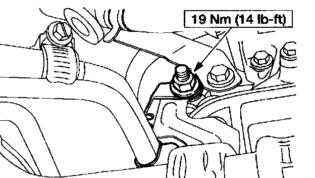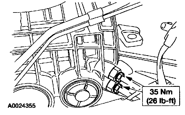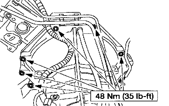 22. Install the cooler tubes, cooler line bracket and the nut.