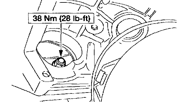 21. Install the seven engine-to-transmission retaining bolts.