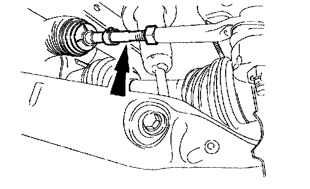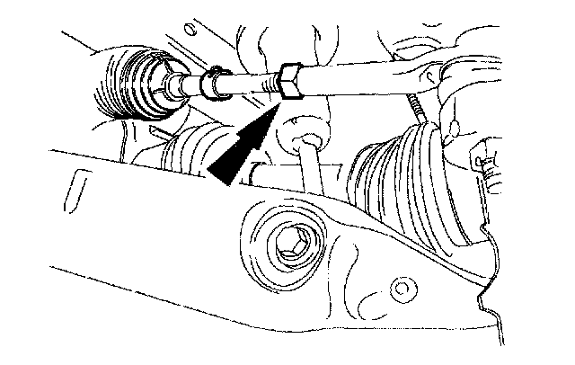 3. NOTE: Do not allow the steering gear bellows to twist when the front wheel spindle tie-rod is rotated.