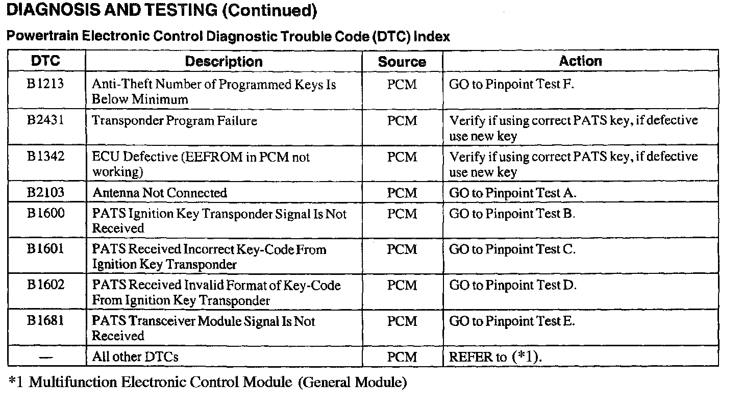 Powertrain Electronic Control Diagnostic Trouble Code (DTC) Index (DTC Index B1213 - B1681):