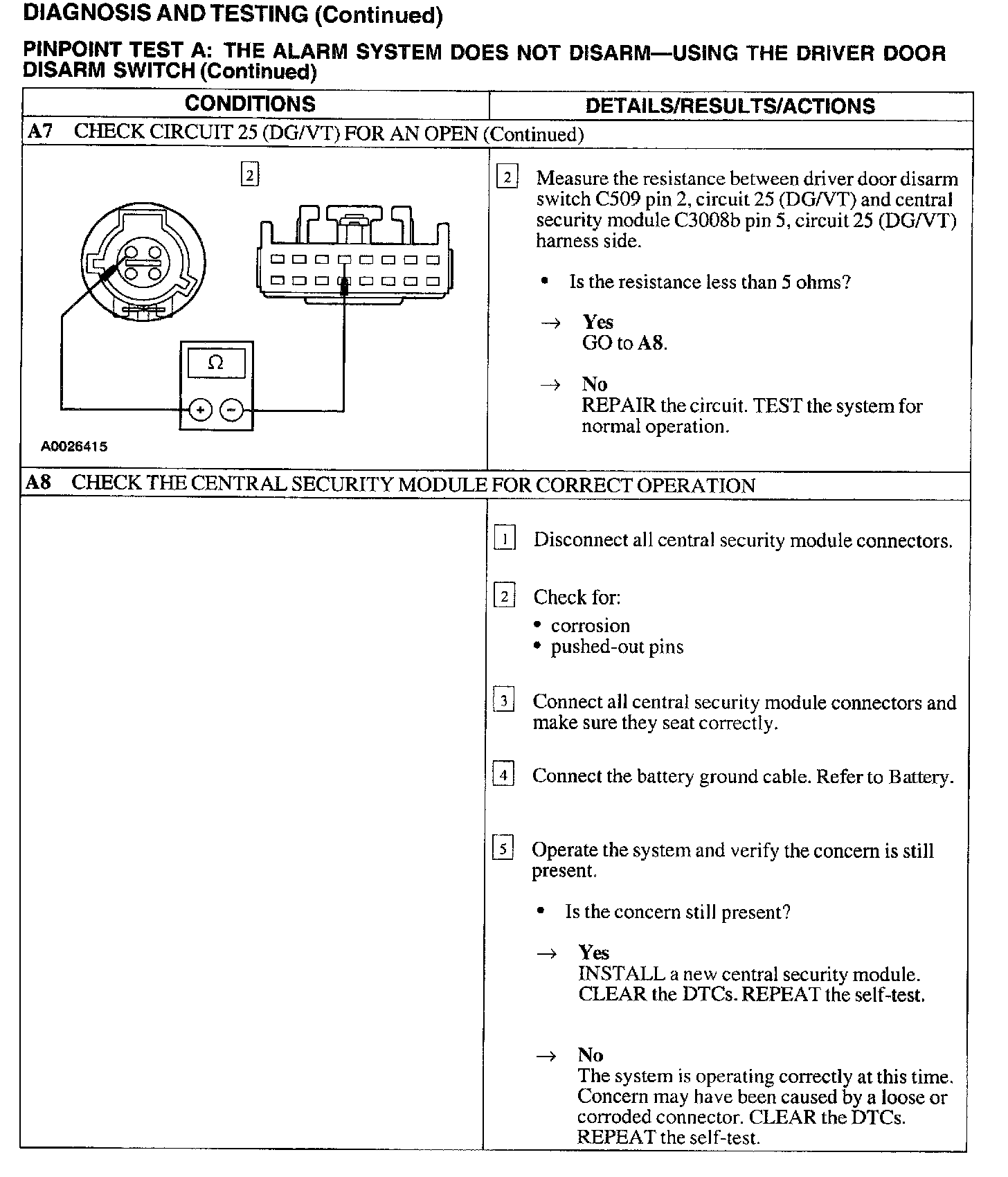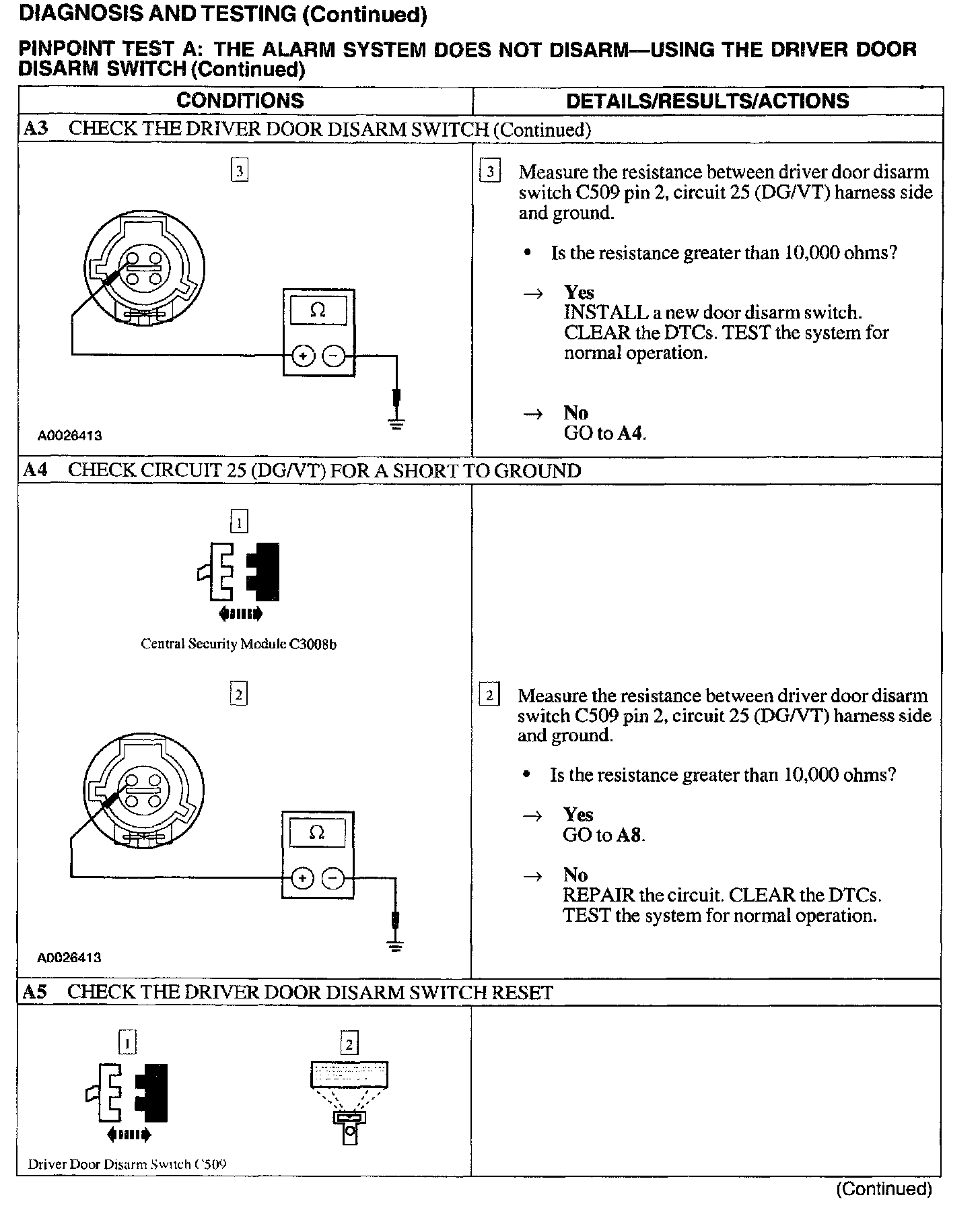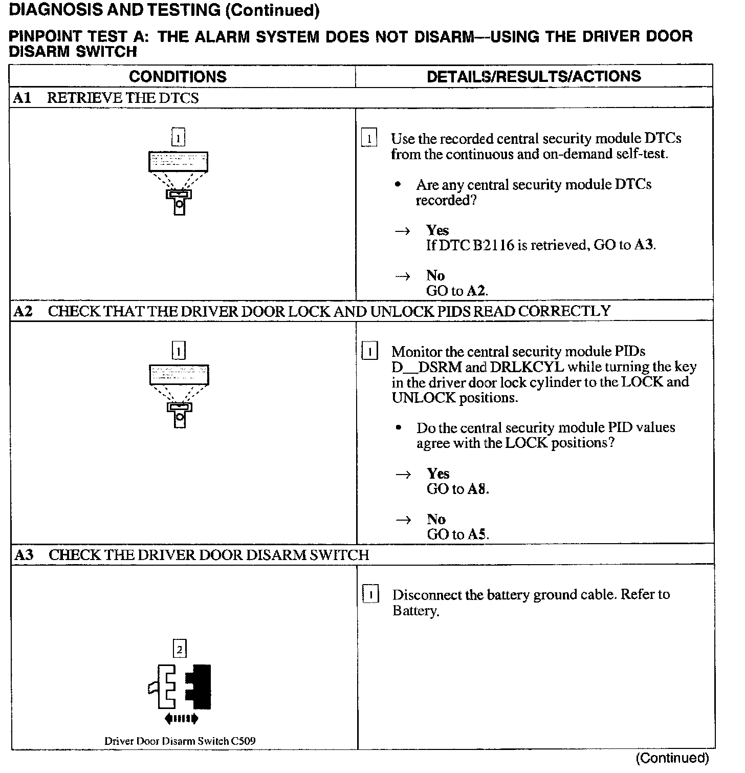 A: Alarm Does Not Disarm - Using The Driver Door Disarm Switch
