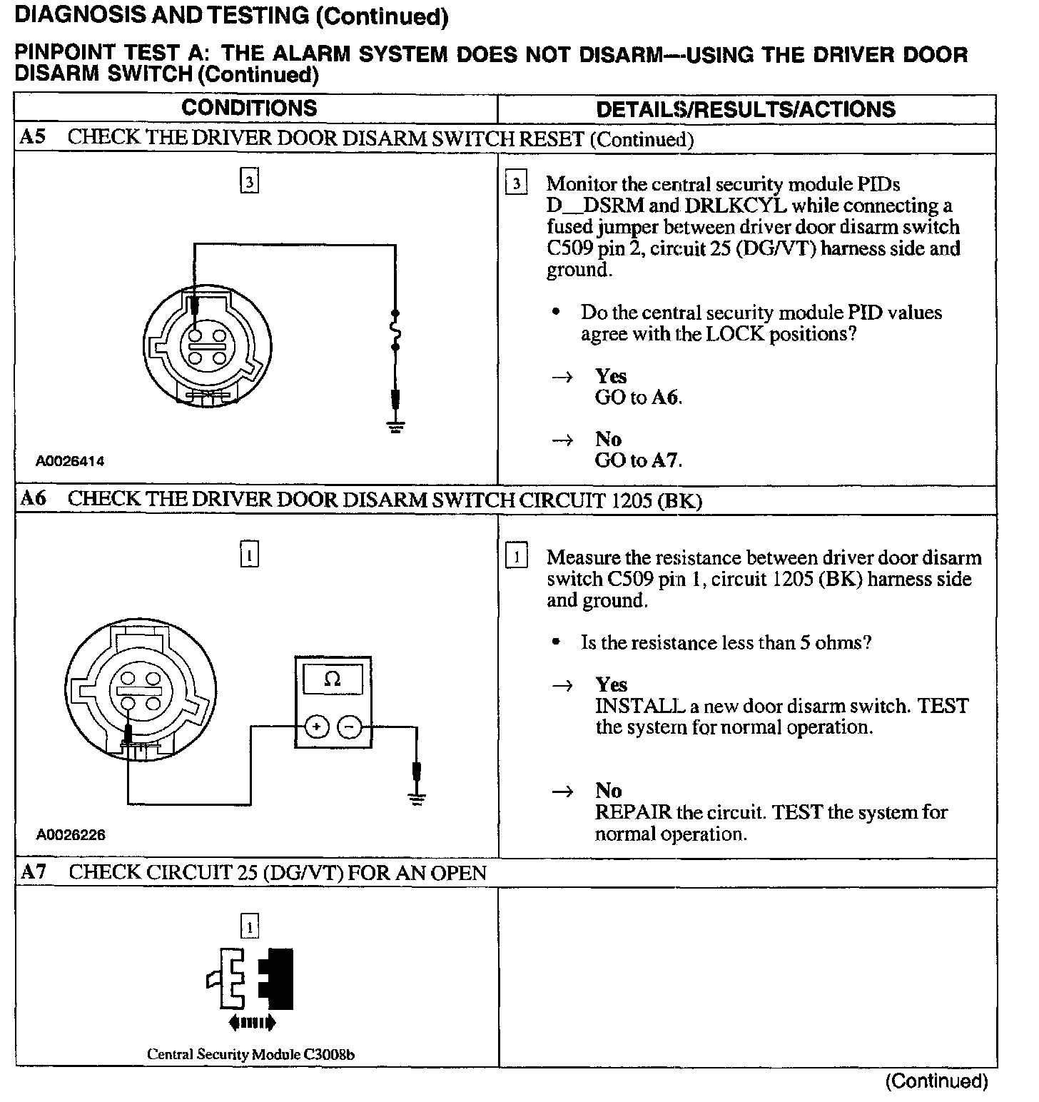 Test A: Does Not Disarm - Using Driver Door Disarm Switch