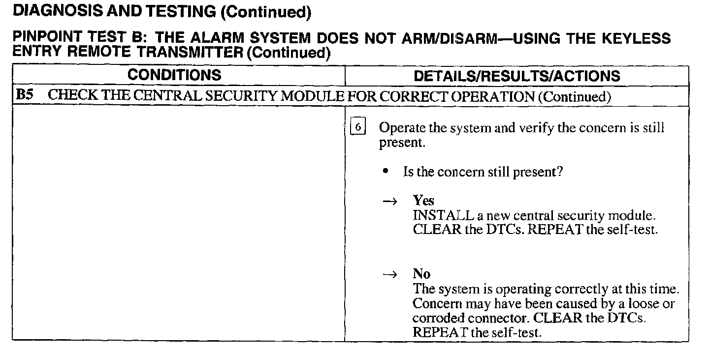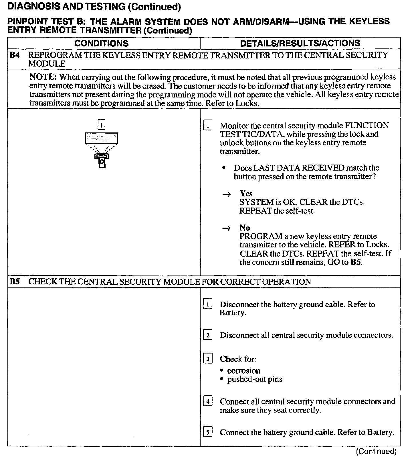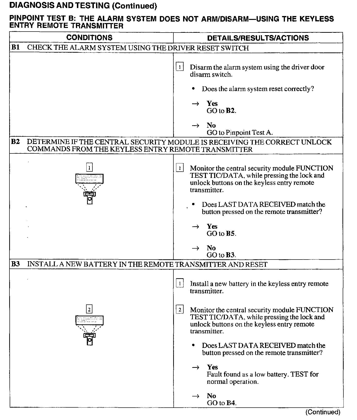 B: Alarm System Does Not Arm/Disarm - Using The Keyless Entry Remote Transmitter