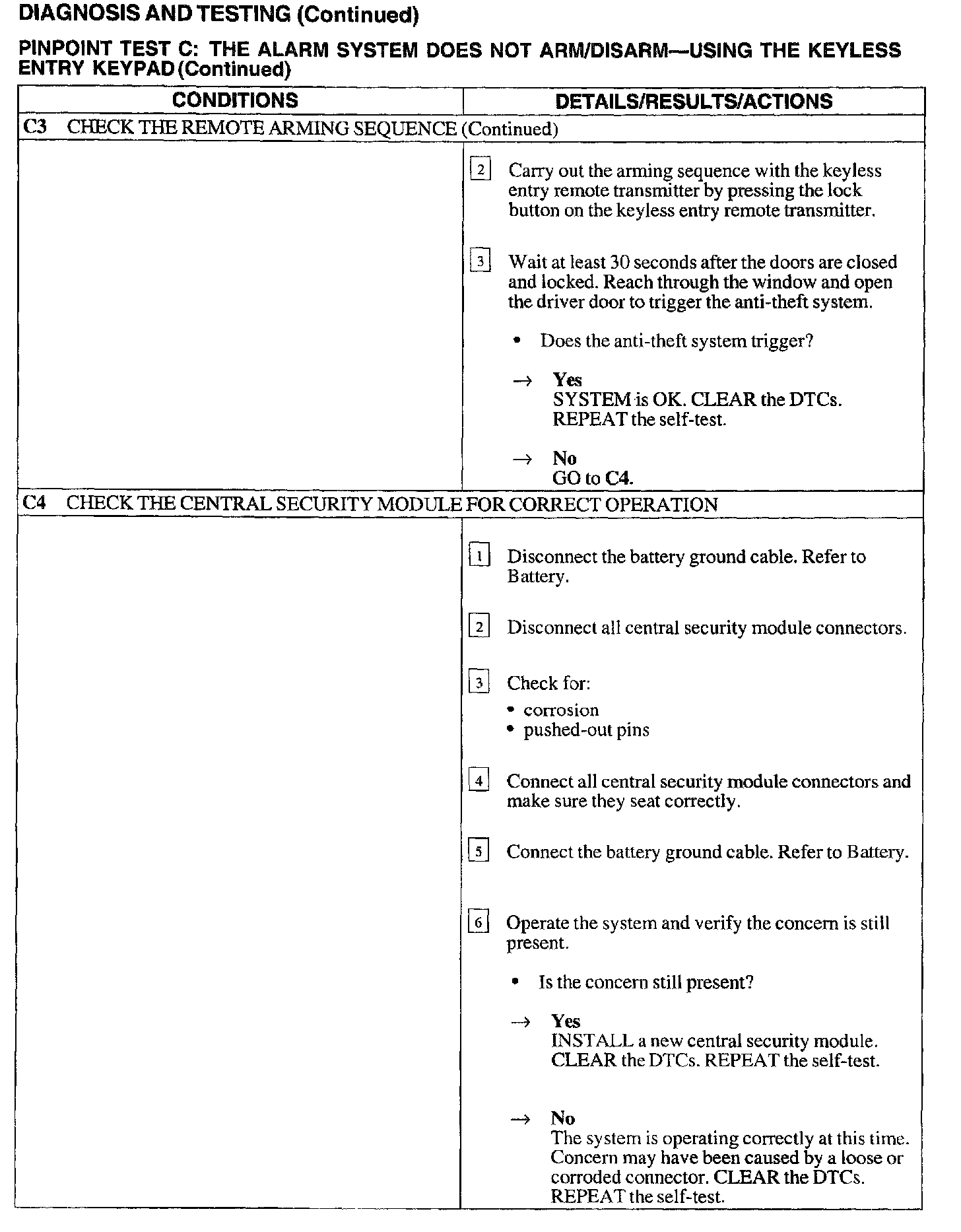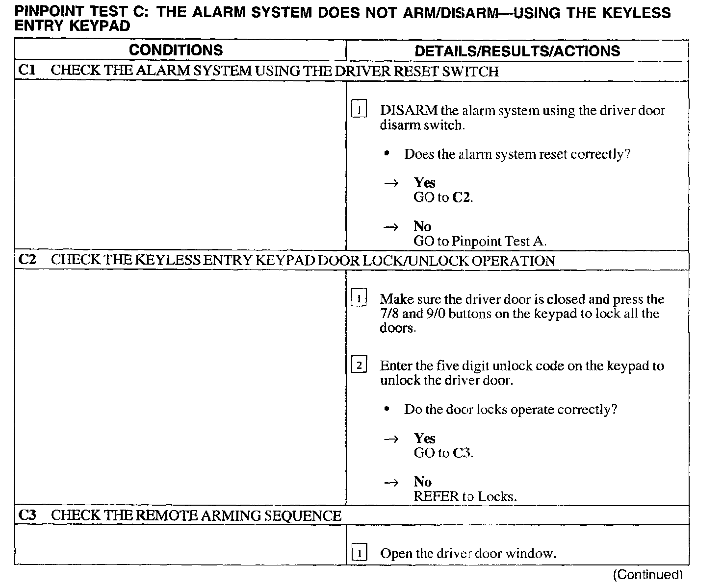 Test C: Alarm System Does Not Arm/Disarm - Keyless Entry Keypad