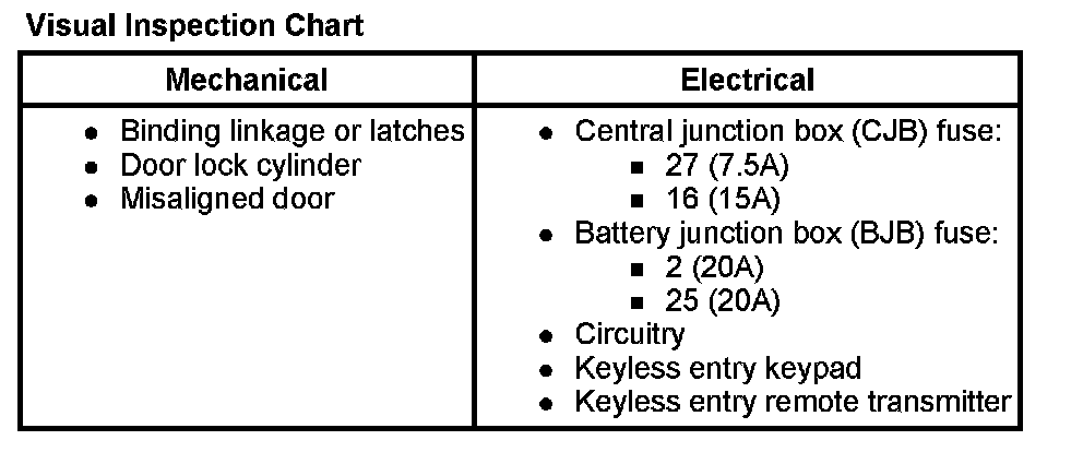 2. Visually inspect for obvious signs of mechanical and electrical damage. Refer to the chart.