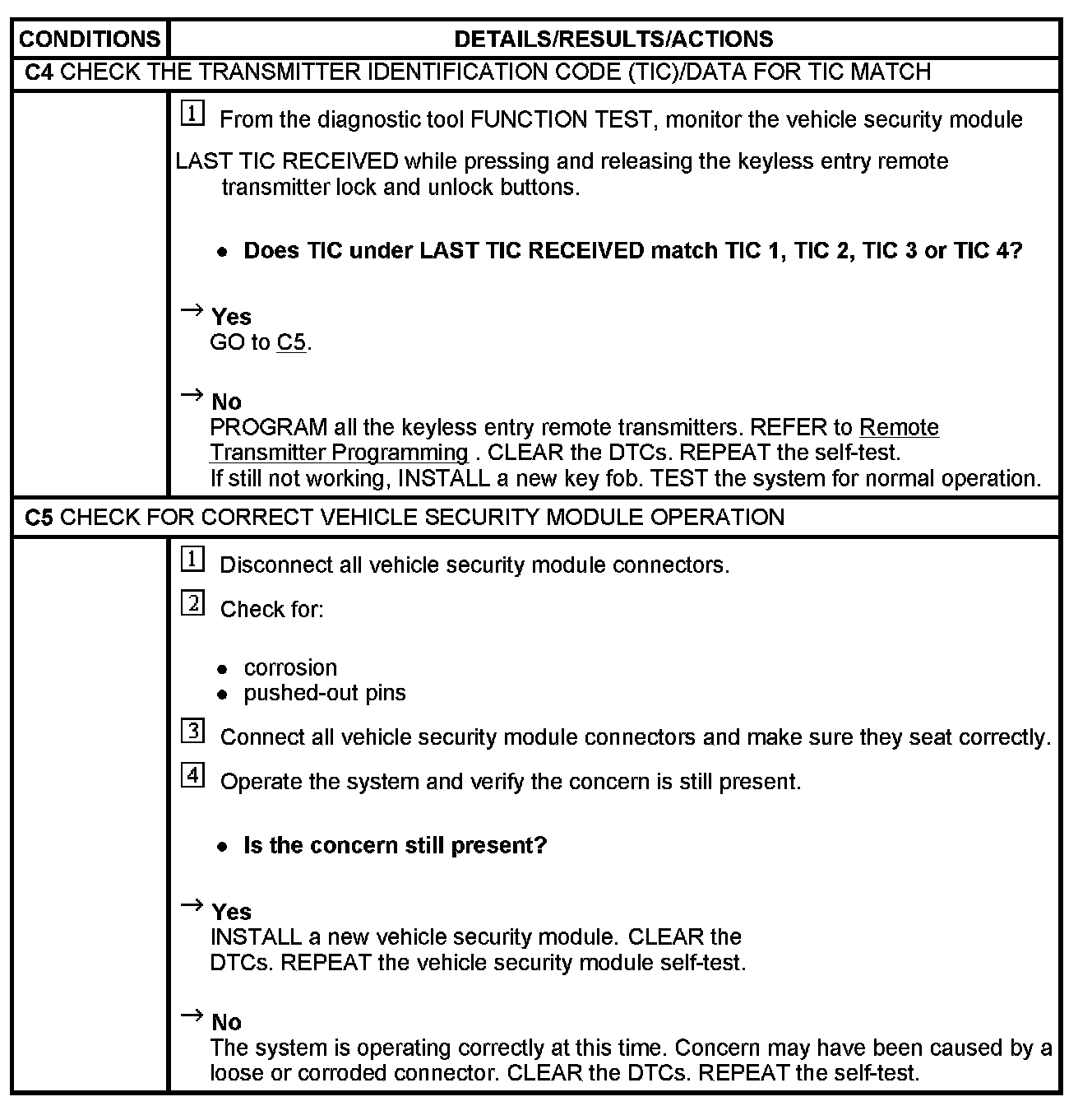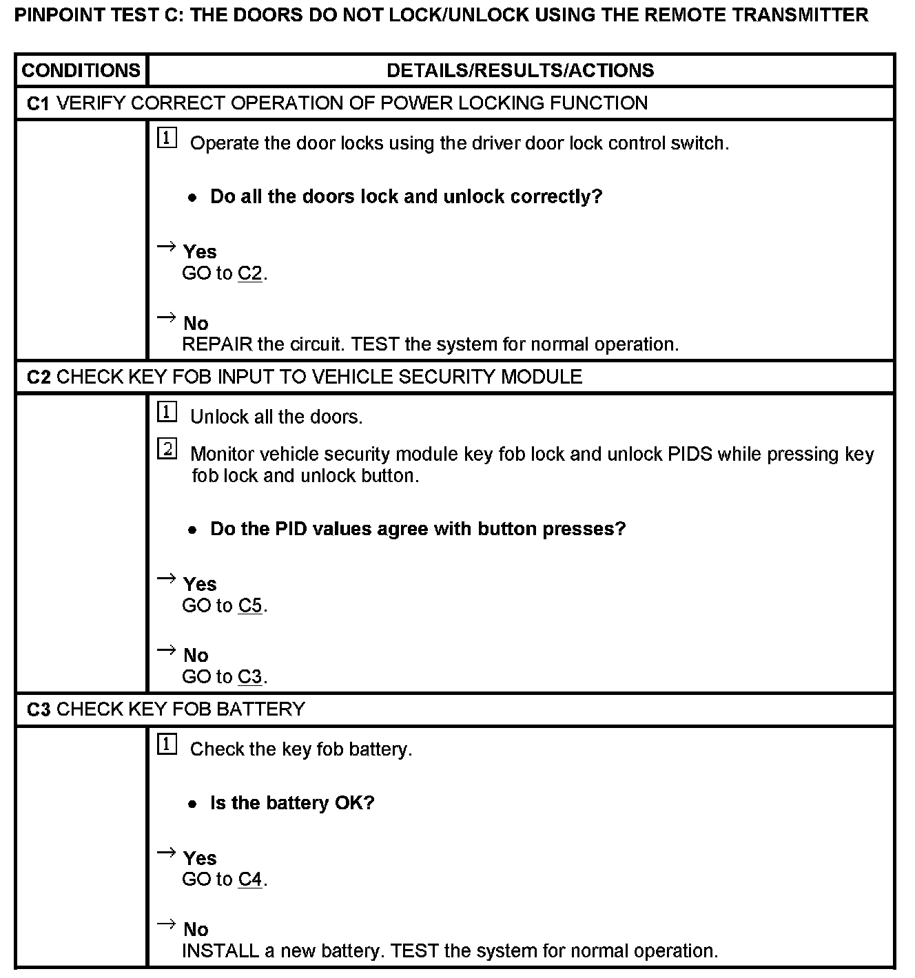 PINPOINT TEST C: THE DOORS DO NOT LOCK/UNLOCK USING THE REMOTE TRANSMITTER