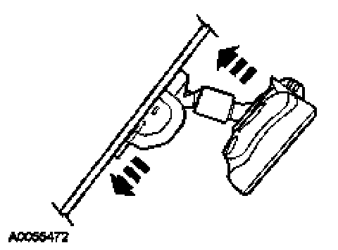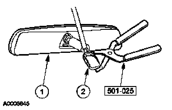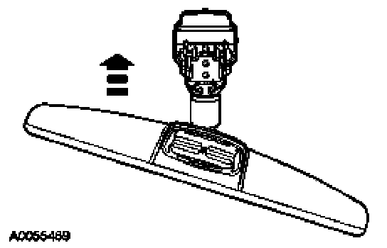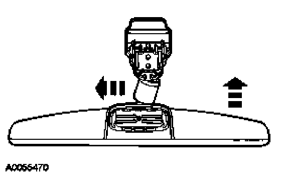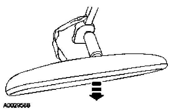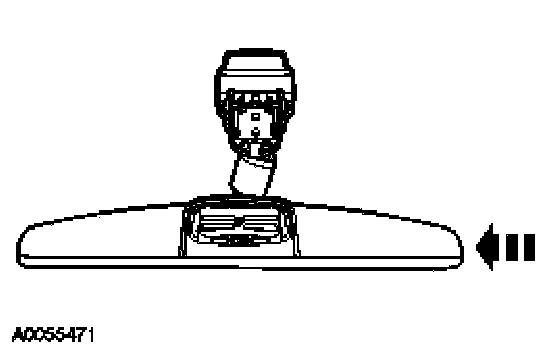 - Position the interior mirror in the full down position. Grasp the interior mirror and rotate in a downward and toward the windshield direction, until it is released from the interior mirror windshield bracket.