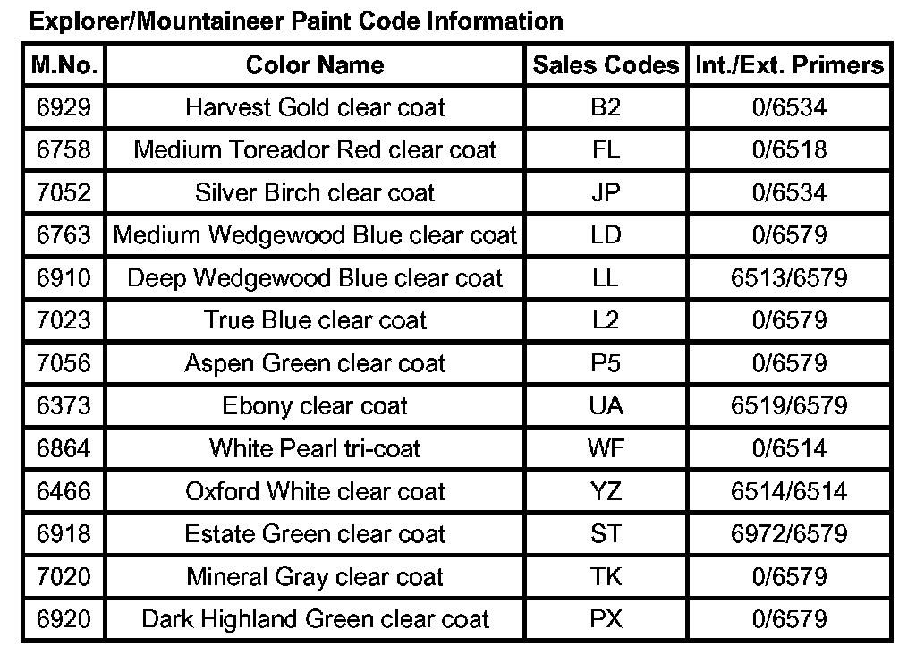 Explorer/Mountaineer Paint Code Information