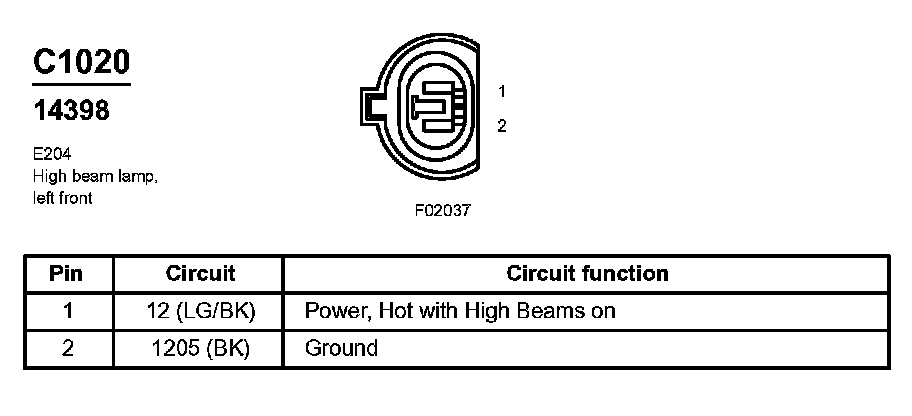High Beam Lamp, Left Front