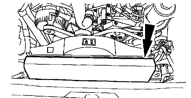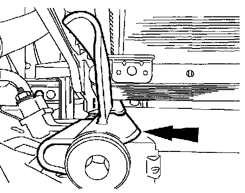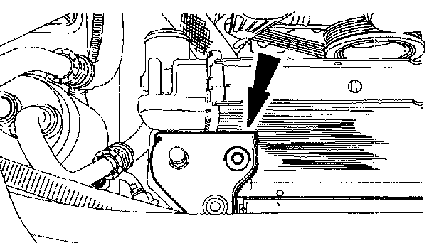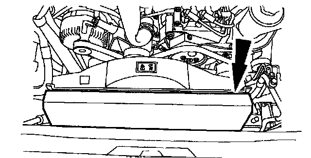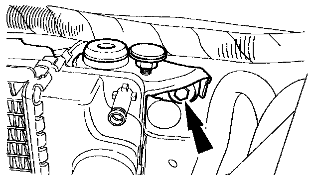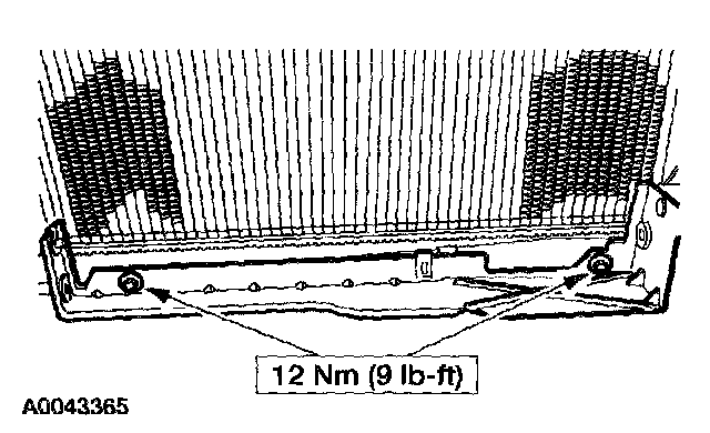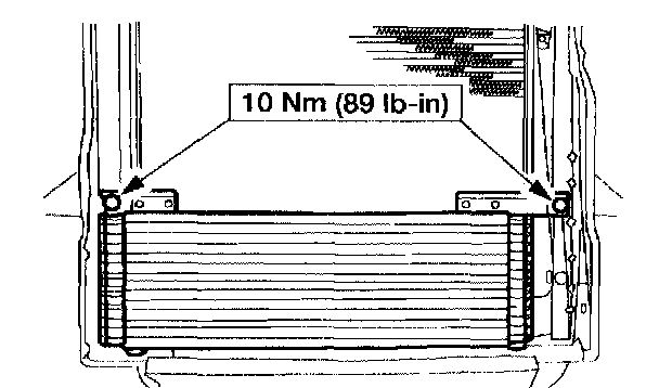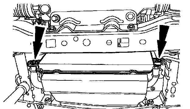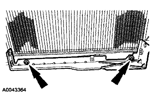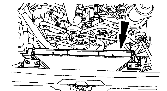 NOTE: It will be necessary to lift the A/C condenser up off the lower support. Move the A/C condenser toward the front of the vehicle.