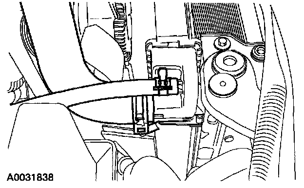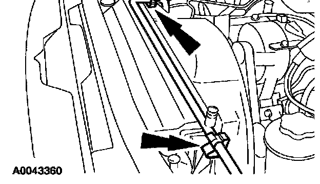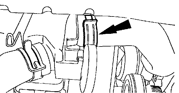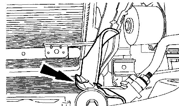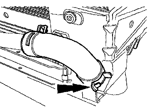 10. Disconnect the hose from the radiator, detach the hose from the retainer(s) and position it aside.