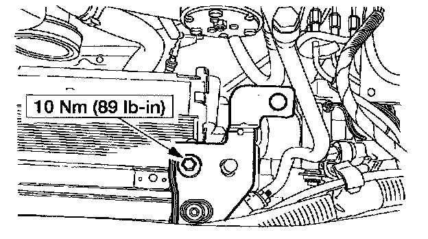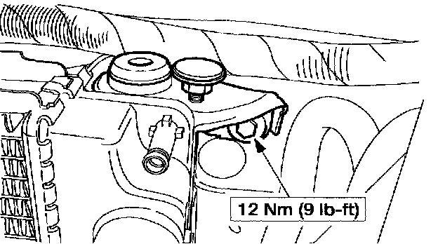 12. Install the right radiator support bracket and bolt.
