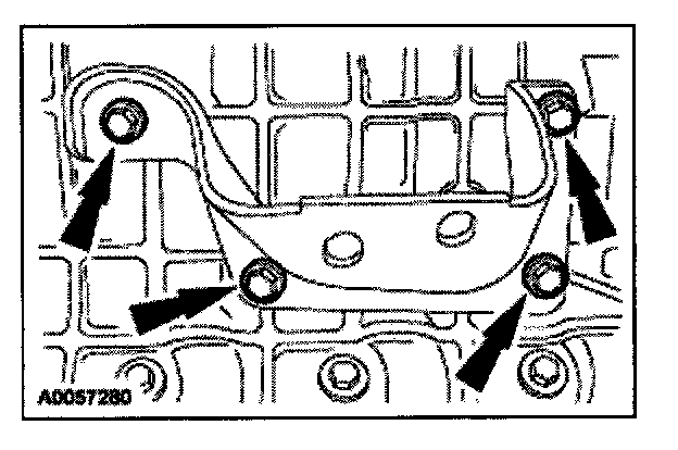 53. Remove the four oil pan bolts.