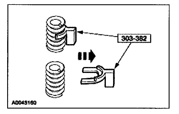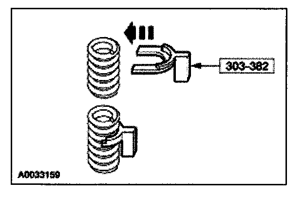 57. Install the special tool between the valve spring coils to prevent valve stem seal damage.