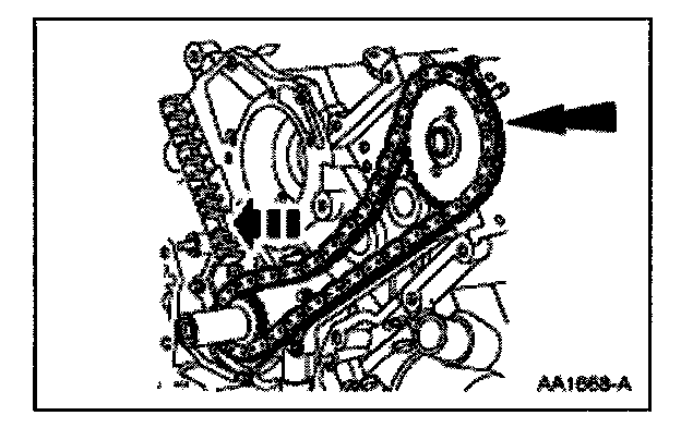 62. Remove the LH and the RH timing chains and the crankshaft sprocket.