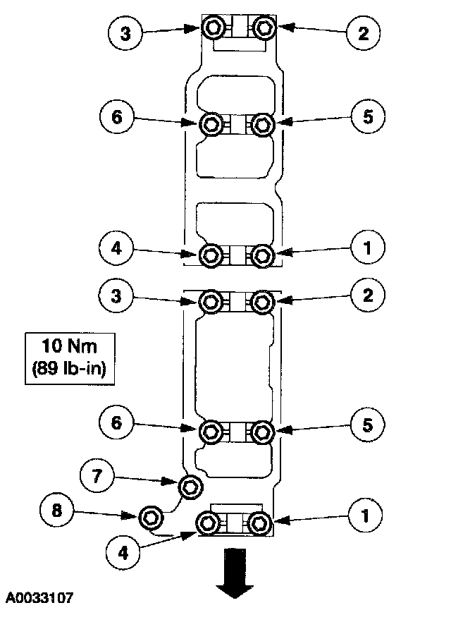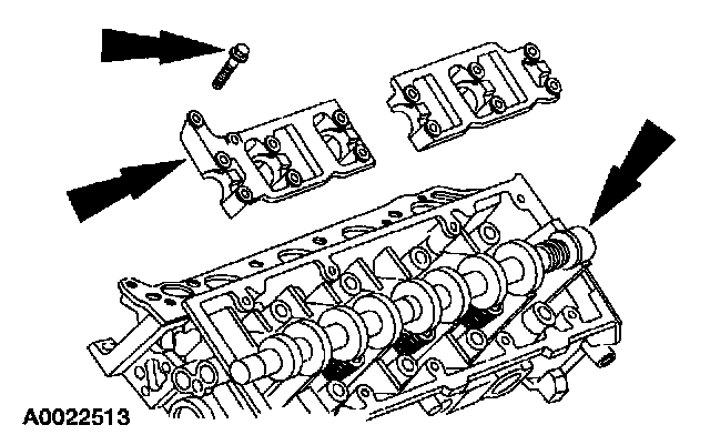 7. NOTE: The camshaft bearing caps must be installed in their original location. Record camshaft bearing cap location.
