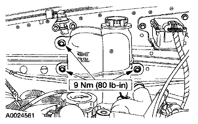7. Remove the bolt from the evaporator outlet line bracket near the degas bottle.