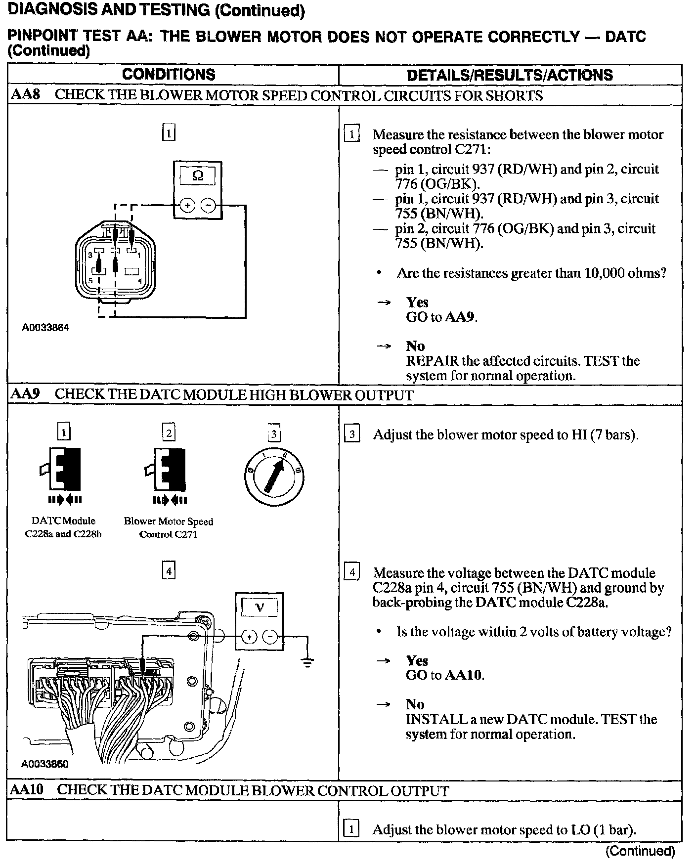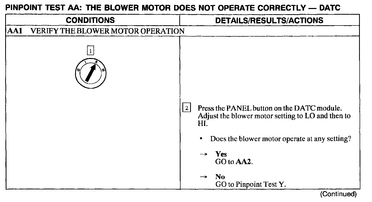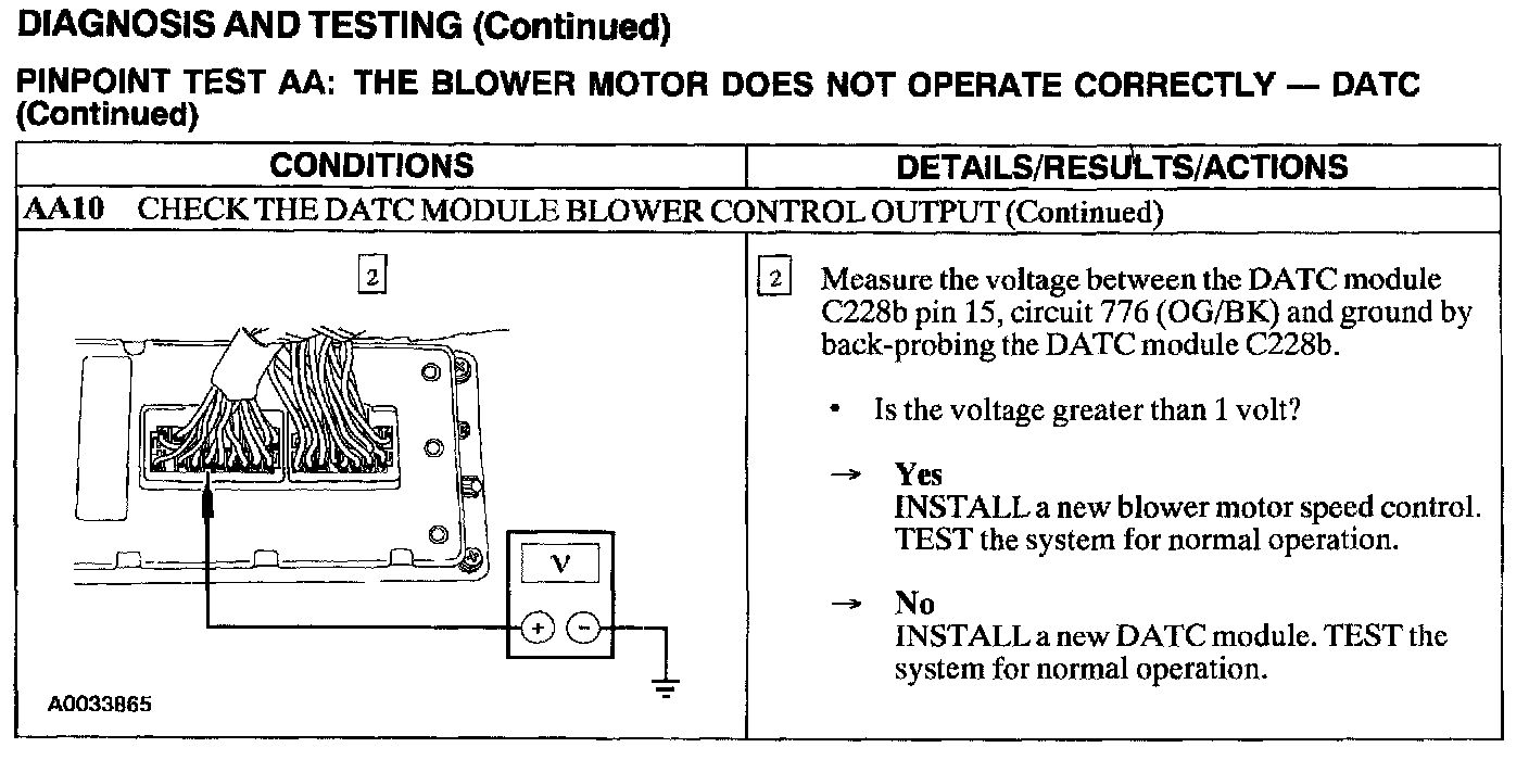 Tests AA: Blower Motor Does Not Operate Correctly - DATC