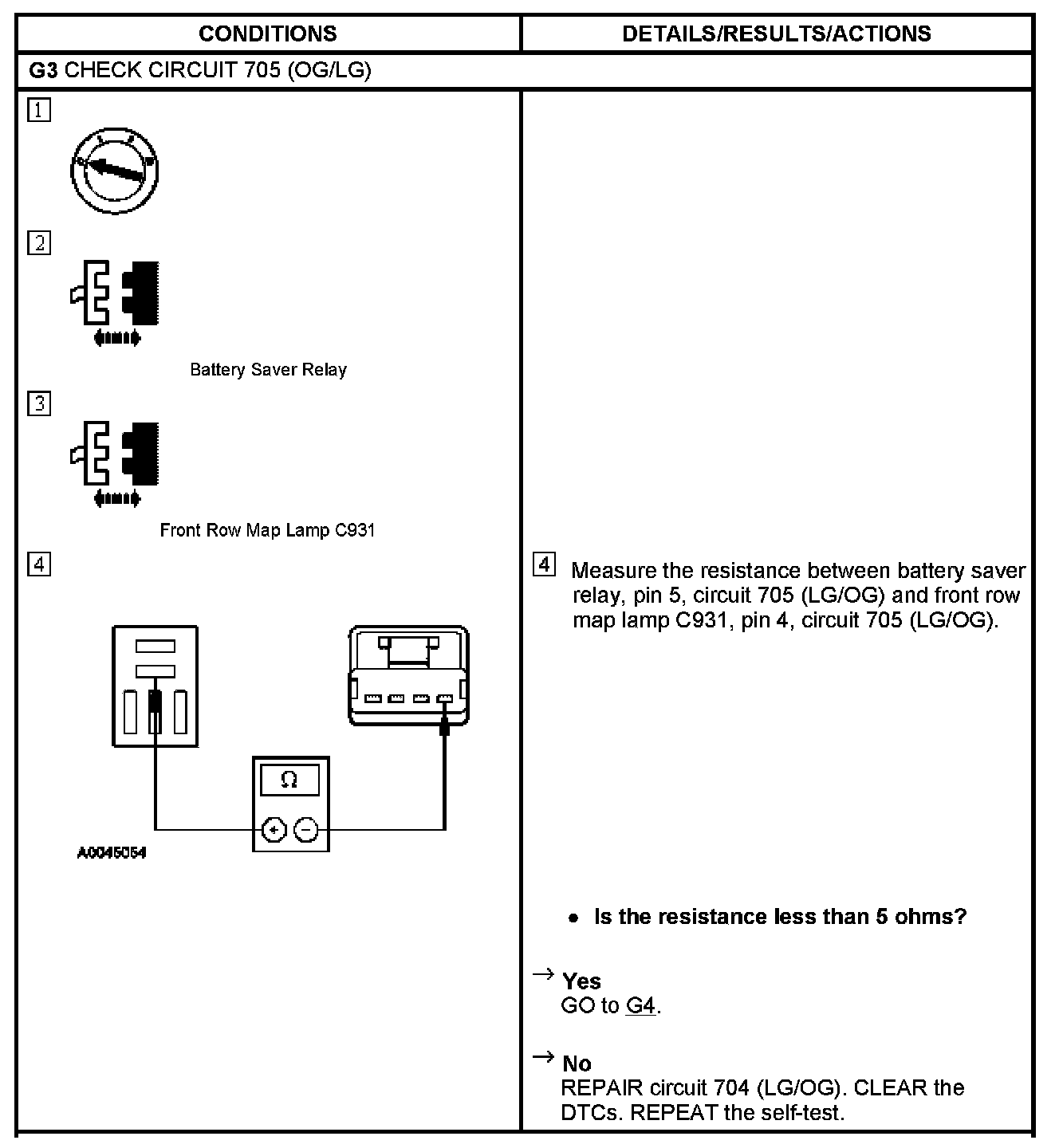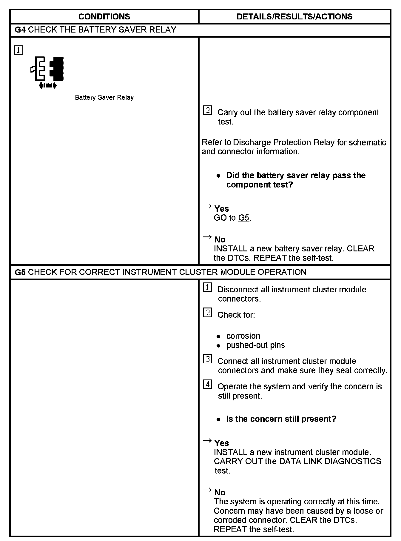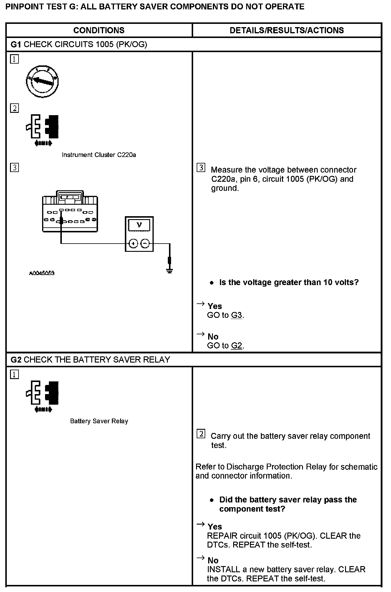 PINPOINT TEST G: ALL BATTERY SAVER COMPONENTS DO NOT OPERATE