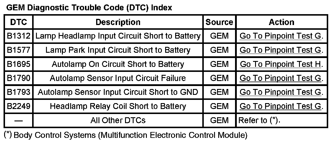 GEM Diagnostic Trouble Code (DTC) Index