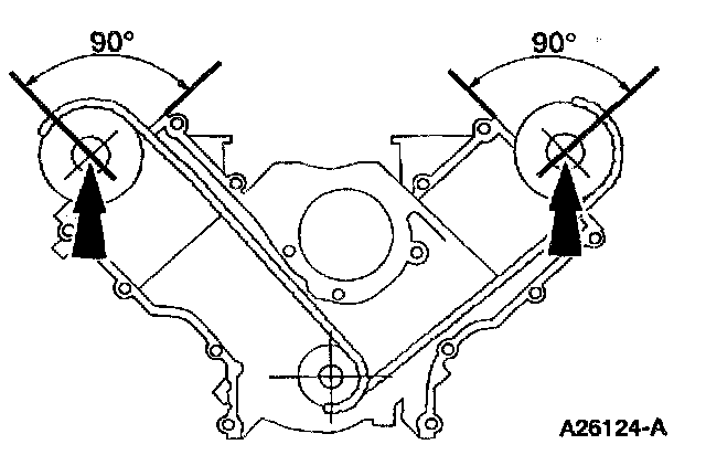 Make sure that the (A) camshaft sprocket keyway is 90 degrees from the (B) valve cover mounting surface.