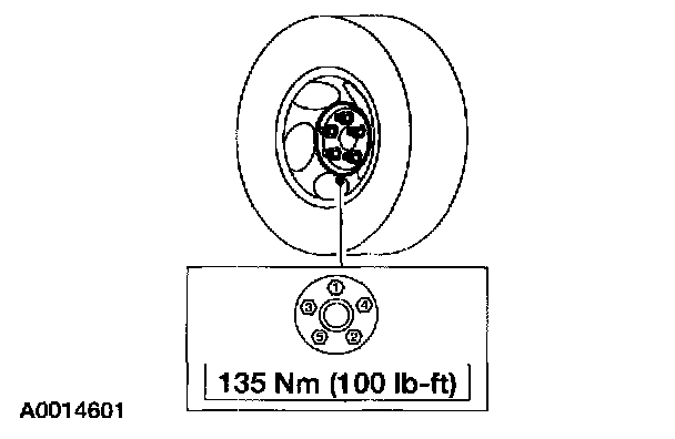 3. CAUTION: Failure to tighten the wheel nuts in a star pattern can result in high brake disc runout, which will speed up the development of brake roughness, shudder and vibration.
