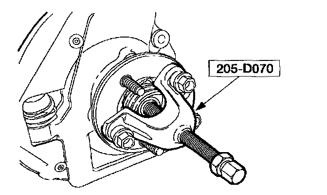 Using the special tool, press the outboard CV joint until it is loose in the hub.