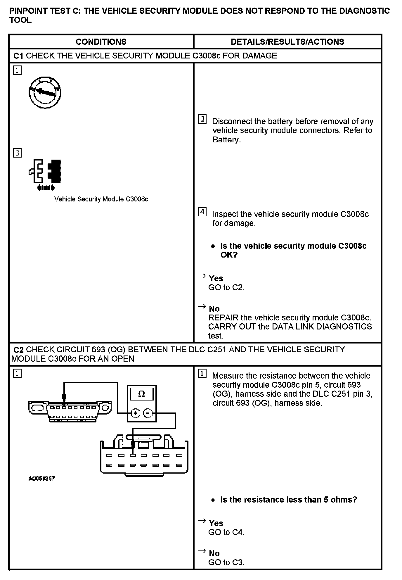 PINPOINT TEST C: THE VEHICLE SECURITY MODULE DOES NOT RESPOND TO THE DIAGNOSTIC TOOL
