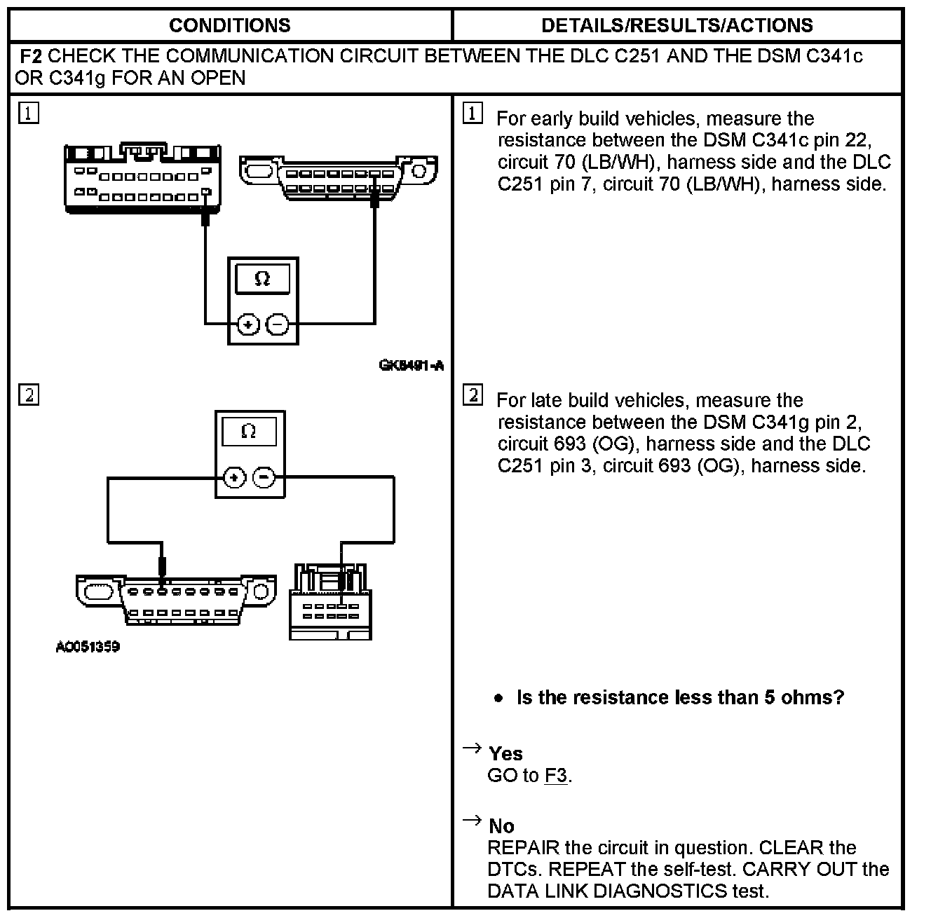 Test F: The Driver Seat Module (DSM) Does Not Respond to the Diagnostic Tool