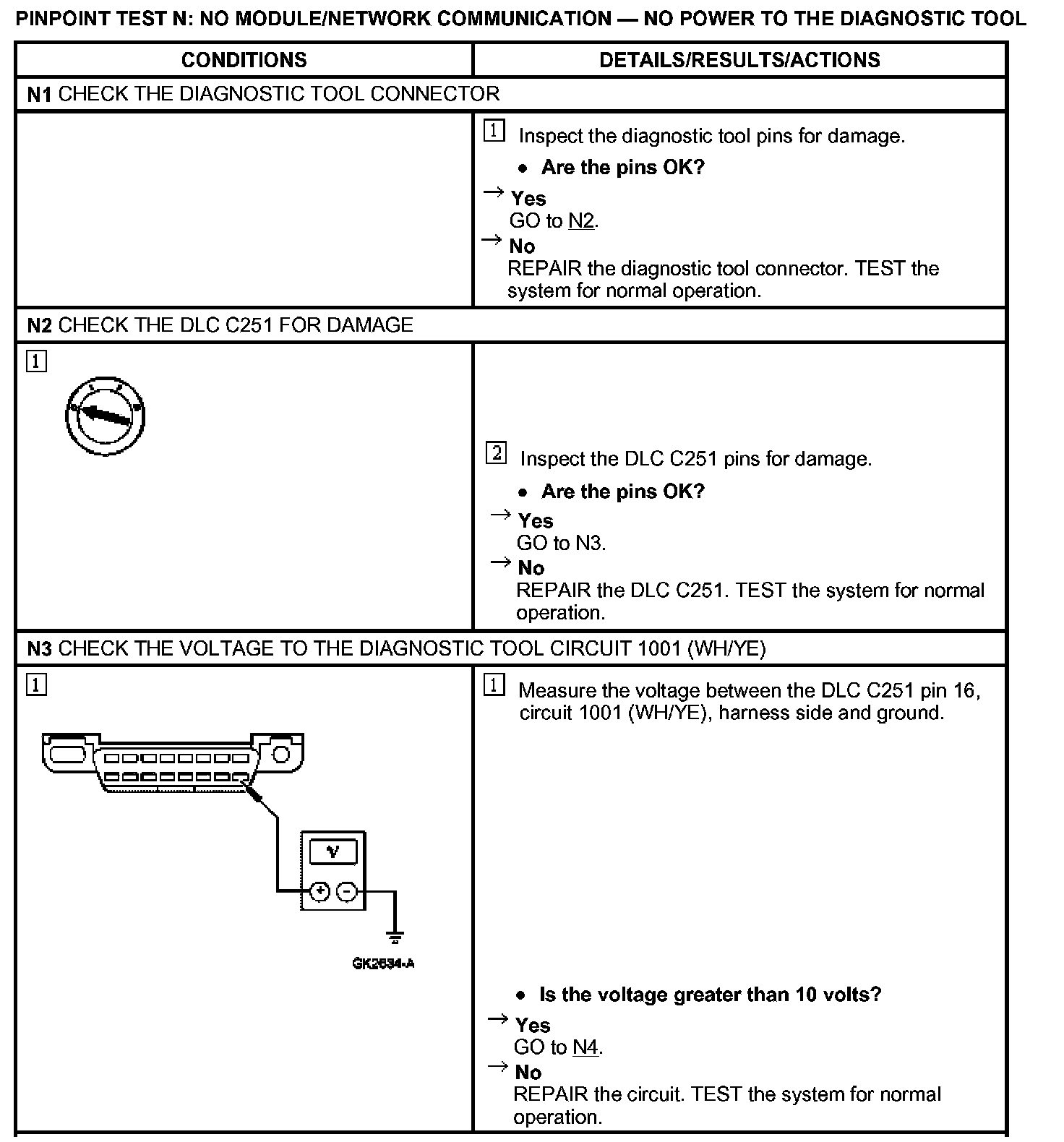 PINPOINT TEST N: NO MODULE/NETWORK COMMUNICATION - NO POWER TO THE DIAGNOSTIC TOOL