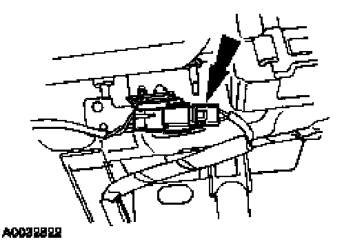 - Follow up between the instrument panel support flanges and locate the passenger air bag module retaining stud.