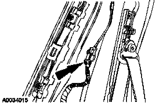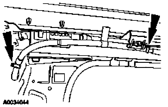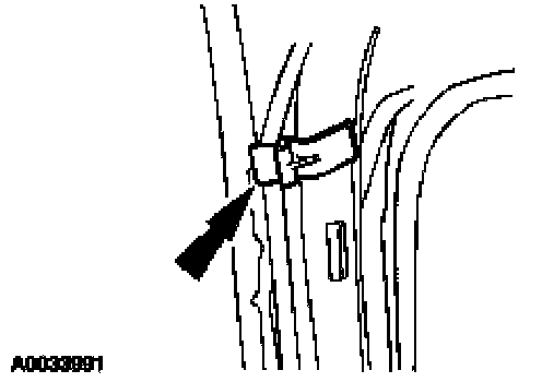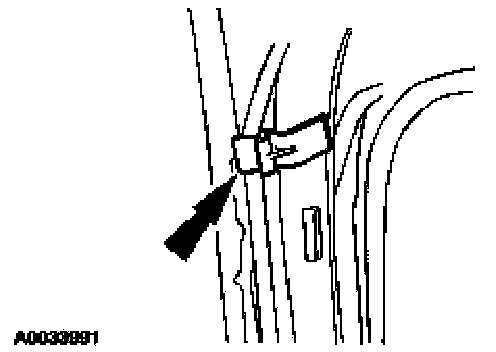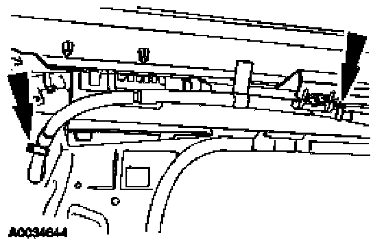9. Remove the side air curtain/safety canopy wire harness and electrical connector pin-type retainers at the C-pillar.