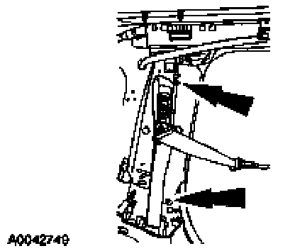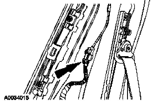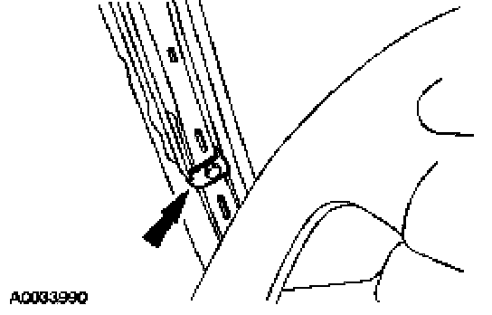6. CAUTION: Inspect the rivet nut and A-pillar sheet metal for damage. Install a new rivet nut if necessary.