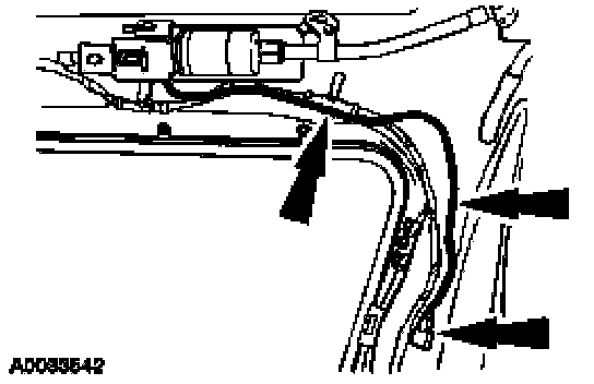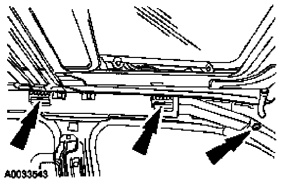 14. Position the moonroof drain tube. Install the pin-type retainers.