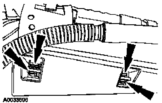 4. Release the moonroof drain tube pin-type retainers.