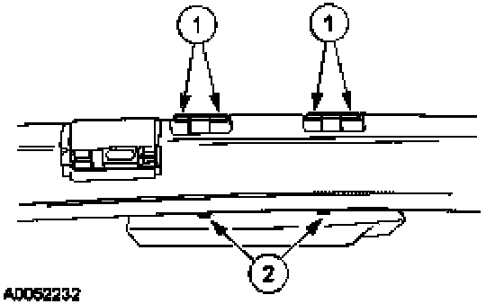 2. With the side air curtain/safety canopy module positioned in the vehicle as shown, angle the rear of the side air curtain/safety canopy module to the sheet metal, so that the deployment canister can be inserted into the sheet metal opening.